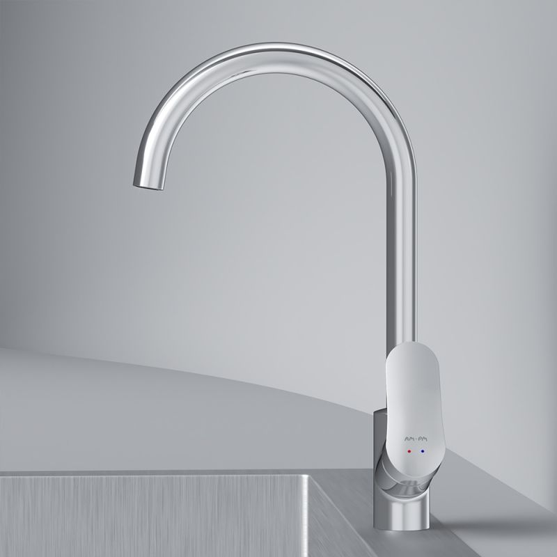 Впервые модный дизайнерский смеситель в доступном сегменте: ультрамодный стиль Dynamic Organic — природные формы в сочетании с четкими линиями, доведенными до совершенства человеком.Максимальный комфорт: плавное вращение поворотного излива в любом направлении обеспечивает непревзойденное удовольствие от использования и удобство в работе на кухне.Эксклюзивная разработка: специально спроектированный для АМ.РМ керамический картридж SoftMotion 35 мм обеспечивает оптимальную регулировку температуры, а также позволяет выдерживать любые перепады давления. Разработан с учетом ваших потребностей и особенностей различных пространств. Высокий излив смесителя Like идеально подойдет для любой раковины поможет вам с легкостью справится с такими задачами, как наполнение больших емкостей.Забота о безопасности: изготовлен из экологичной и безопасной латуни с пониженным содержанием свинца. Надежность на 700%, протестирован на 500 000 циклов включения, что в 7 раз превышает европейские стандарты.