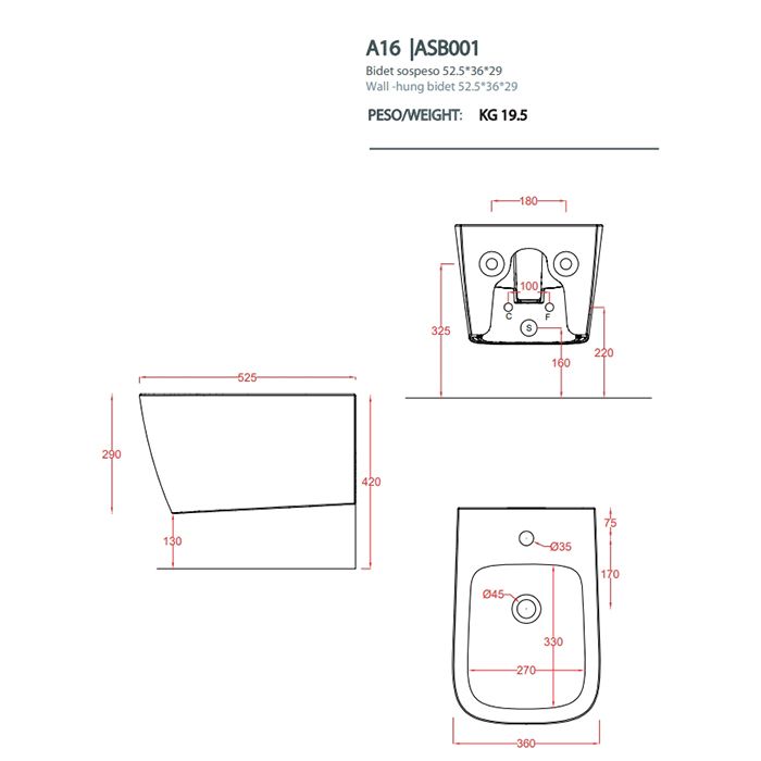Биде Artceram A16 ASB001 42 00 petrolioArtceram A16 Биде подвесное 36х52 см, 1 отверстие, цвет petrolio