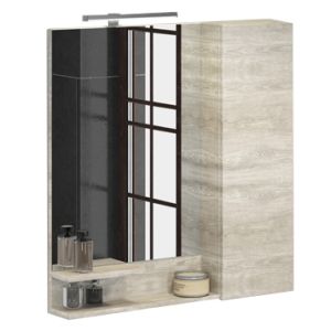 Название: Зеркало шкаф с полкой Артикул: Верона 90 (правое) Варианты цвета: Дуб белый Материал корпуса и фасада: влагостойкое ЛДСП Габариты (ШхВхГ): 900*800*150 мм Зеркальное высококачественное полотно с амальгамой на основе серебра. Створка мебельного элемента оснащена петлями с функцией плавного закрывания. За створкой две горизонтальные полки.