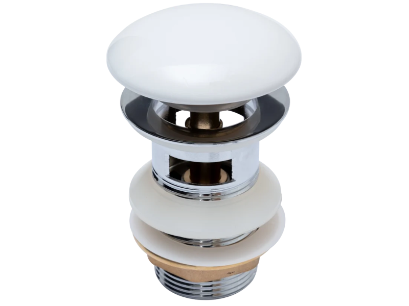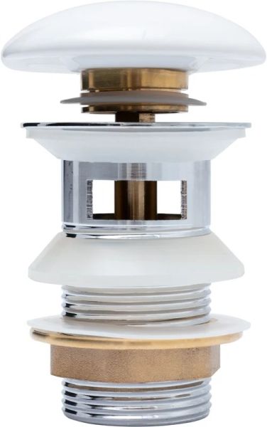 Донный клапан латунь с переливом крышка керамика белый (333927)