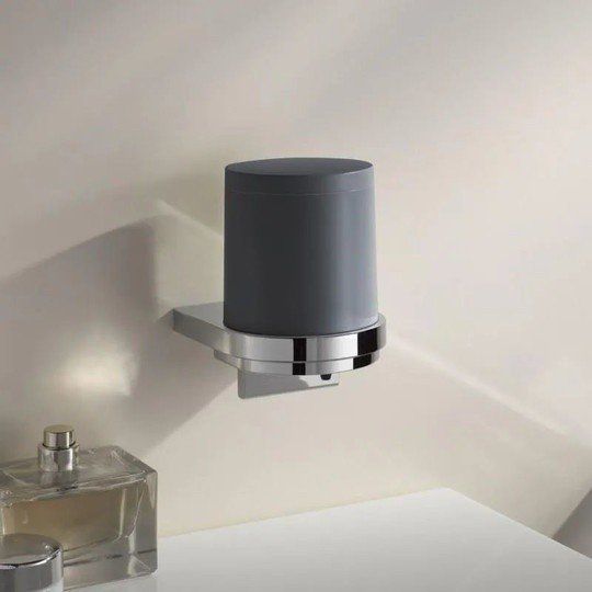 Keuco Collection Moll 12752 010101 Дозатор жидкого мыла (хром | антрацит), верхний стаканчик из пластика, матовый, в комплекте с держателем и насосиком, для жидкого мыла объем: около 180 мл. Дозировка: около 0,5 мл/нажатие.