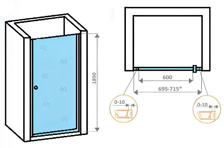 Душевая дверь в нишу PARLY DE70Размер: 70х185 см