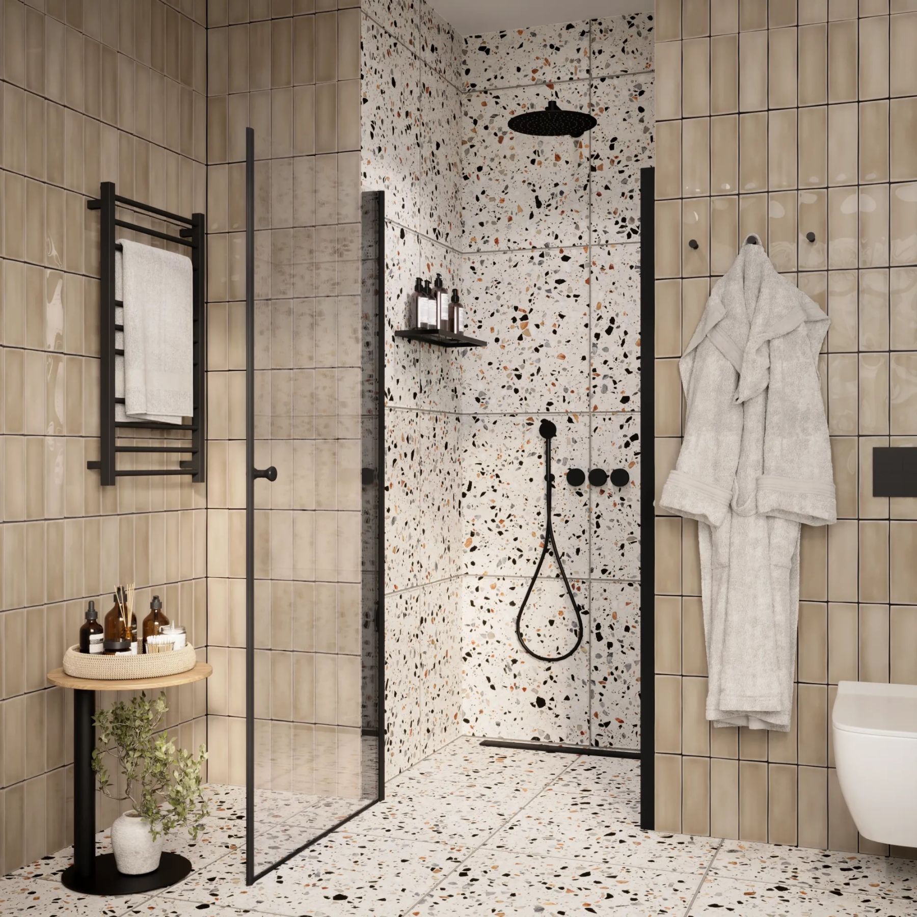 • Защищает ванную комнату от брызг воды. Пол возле душевой зоны остается сухим, что снижает шансы поскользнуться после водных процедур.