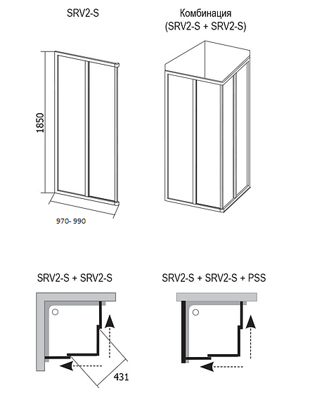Душевая дверь Ravak Supernova SRV2-100-S 14VA0102Z1 Transparent профиль белый