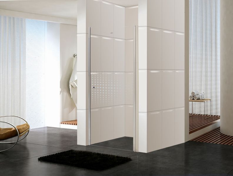 Душевая дверь в нишу Parly DE90Размер: 90х185 смРаспашная дверь образует вход комфортной ширины. Модель из прозрачного закаленного стекла (5 мм) с дизайнерским рисунком. Полотно устойчиво к случайным ударам. В случае битья, стекло рассыпается на множество мелких частей с тупыми гранями.Алюминиевый полированный хромированный профиль не деформируется при высокой влажности и смене температуры. Хромированные петли и ручка устойчивы к образованию коррозии.Достоинства душевой двери:Защищает ванную комнату от брызг воды. Пол возле душевой зоны остается сухим, что снижает шансы поскользнуться после водных процедур.Душевая дверь помогает зонировать помещение на отдельные функциональные участки. Особенно это актуально для совмещенного санузла и небольших ванных комнат.Двери из стекла практичны, долговечны и гигиеничны. На стеклянной поверхности не скапливаются бактерии и грязь, полотно легко чистить.Дизайн двери дополнит стилистическую задумку оформления ванной.При правильном уходе душевая дверь долгие годы сохраняет эстетический внешний вид. Для чистки необходимо использовать мягкие губки и салфетки, специальные жидкие чистящие средства.Нельзя использовать жесткие губки и абразивные порошки, которые оставляют мелкие царапины. Как результат, в них скапливается грязь и размножаются бактерии. Поэтому важно правильно чистить стеклянные поверхности.