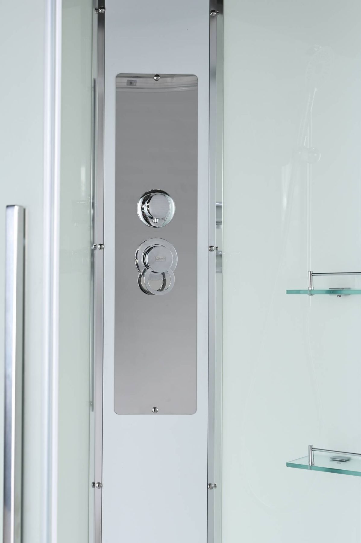 Стильная душевая кабина AvaCan EM2090 сочетает в себе высокую функциональность, практичность и надежность. При изготовлении применяется безопасное закаленное стекло толщиной 5 мм (матовое), надежно фиксируемое алюминиевым профилем. Сборка без силикона (увеличивает срок службы), внутренняя сборка(облегчает установку и ревизию; позволяет установить в ограниченном пространстве), смеситель резьбовой (без хомутов). Съемный экран поддона (позволяет осуществлять ревизию сифона). Цвет профиля  хром. Двойные металлические ролики дверей (увеличивают срок службы).В комплекте : душевая штанга, две полочки , тропический (верхний) душ, арома-лейка с витамином С (картридж съемный),полимерная вставка в поддон(имитация дерева),сифон, ручки дверей из нержавейки , двойные ролики .