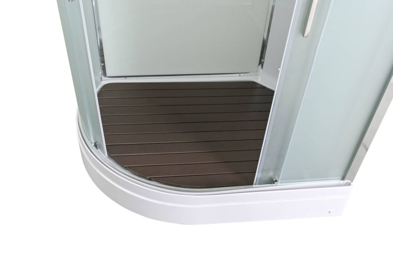 Стильная душевая кабина AvaCan EM2811R сочетает в себе высокую функциональность, практичность и надежность. При изготовлении применяется безопасное закаленное стекло толщиной 5 мм (матовое), надежно фиксируемое алюминиевым профилем. Сборка без силикона (увеличивает срок службы), внутренняя сборка(облегчает установку и ревизию; позволяет установить в ограниченном пространстве), смеситель резьбовой (без хомутов). Съемный экран поддона (позволяет осуществлять ревизию сифона). Цвет профиля хром. Двойные металлические ролики дверей (увеличивают срок службы).В комплекте : душевая штанга, две полочки , тропический (верхний) душ, арома-лейка с витамином С (картридж съемный),полимерная вставка в поддон(имитация дерева),сифон, ручки дверей из нержавейки , двойные ролики .