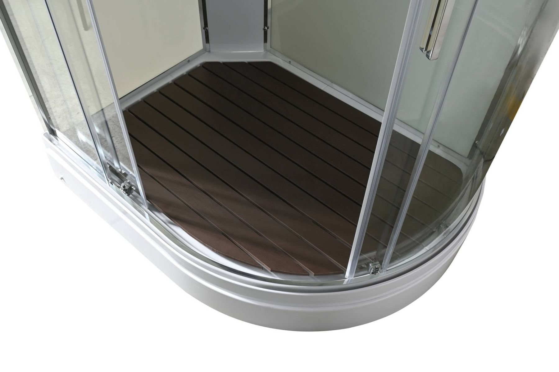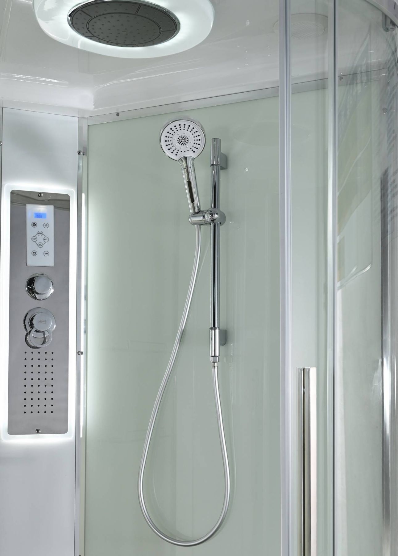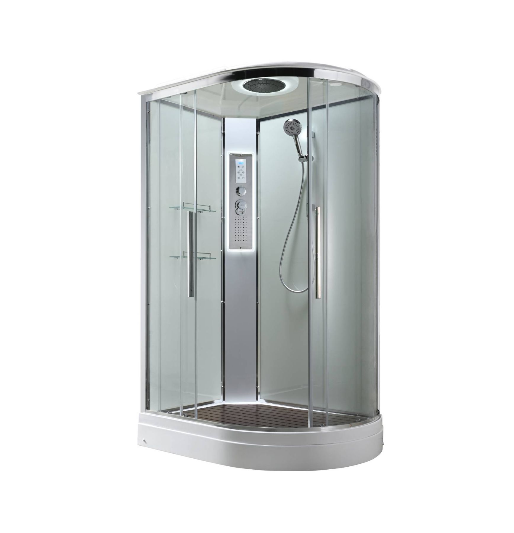 Стильная душевая кабина AvaCan EM2812LLEDT сочетает в себе высокую функциональность, практичность и надежность. При изготовлении применяется безопасное закаленное стекло толщиной 5 мм (прозрачное), надежно фиксируемое алюминиевым профилем. Сборка без силикона (увеличивает срок службы), внутренняя сборка(облегчает установку и ревизию; позволяет установить в ограниченном пространстве), смеситель резьбовой (без хомутов). Съемный экран поддона (позволяет осуществлять ревизию сифона). Цвет профиля  хром. Двойные металлические ролики дверей (увеличивают срок службы).В комплекте : душевая штанга, две полочки , тропический (верхний) душ, арома-лейка с витамином С (картридж съемный),полимерная вставка в поддон(имитация дерева),сифон, ручки дверей из нержавейки , двойные ролики ,пульт сенсорный(Блютуз ,LED подсветка ,радио ,вытяжка),гидромассаж спины.