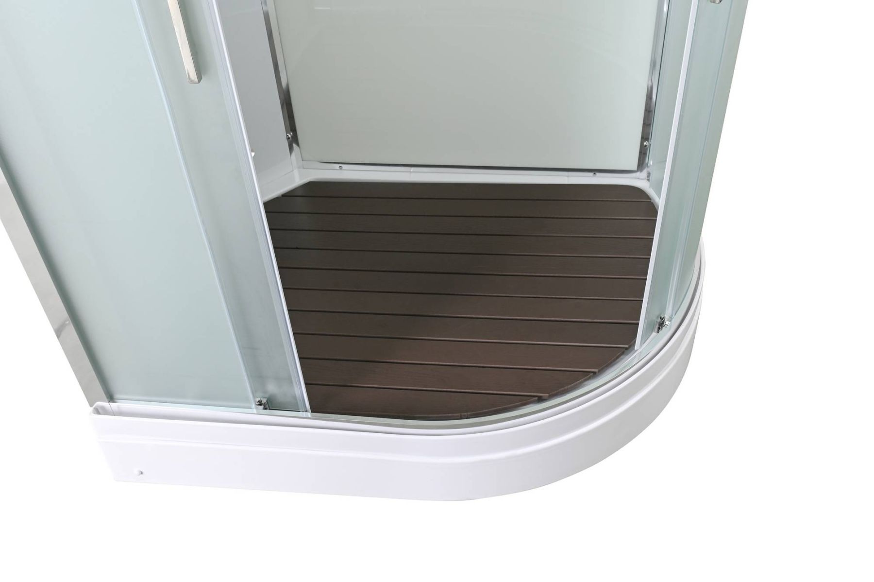 Стильная душевая кабина AvaCan EM2912L сочетает в себе высокую функциональность, практичность и надежность. При изготовлении применяется безопасное закаленное стекло толщиной 5 мм (матовое), надежно фиксируемое алюминиевым профилем. Сборка без силикона (увеличивает срок службы), внутренняя сборка(облегчает установку и ревизию; позволяет установить в ограниченном пространстве), смеситель резьбовой (без хомутов). Съемный экран поддона (позволяет осуществлять ревизию сифона). Цвет профиля хром. Двойные металлические ролики дверей (увеличивают срок службы).В комплекте : душевая штанга, две полочки , тропический (верхний) душ, арома-лейка с витамином С (картридж съемный),полимерная вставка в поддон(имитация дерева),сифон, ручки дверей из нержавейки , двойные ролики .