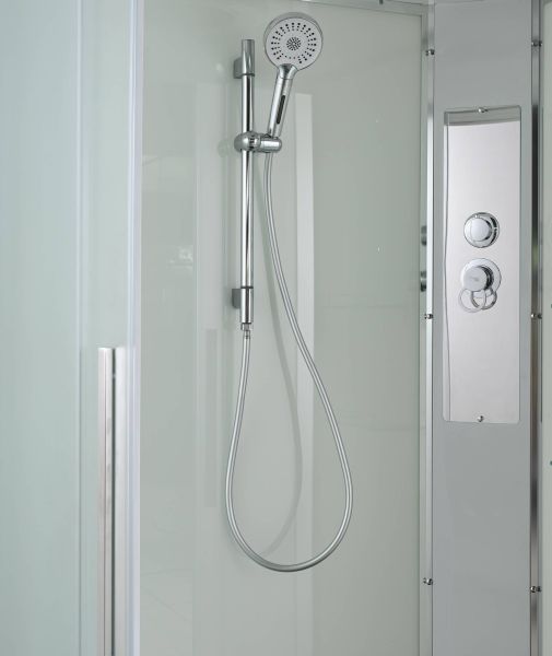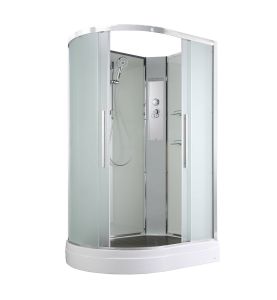 Стильная душевая кабина AvaCan EM2912RN сочетает в себе высокую функциональность, практичность и надежность. При изготовлении применяется безопасное закаленное стекло толщиной 5 мм (матовое), надежно фиксируемое алюминиевым профилем. Сборка без силикона (увеличивает срок службы), внутренняя сборка(облегчает установку и ревизию; позволяет установить в ограниченном пространстве), смеситель резьбовой (без хомутов). Съемный экран поддона (позволяет осуществлять ревизию сифона). Цвет профиля  хром. Двойные металлические ролики дверей (увеличивают срок службы).В комплекте : душевая штанга, две полочки , арома-лейка с витамином С (картридж съемный),полимерная вставка в поддон(имитация дерева),сифон, ручки дверей из нержавейки , двойные ролики .