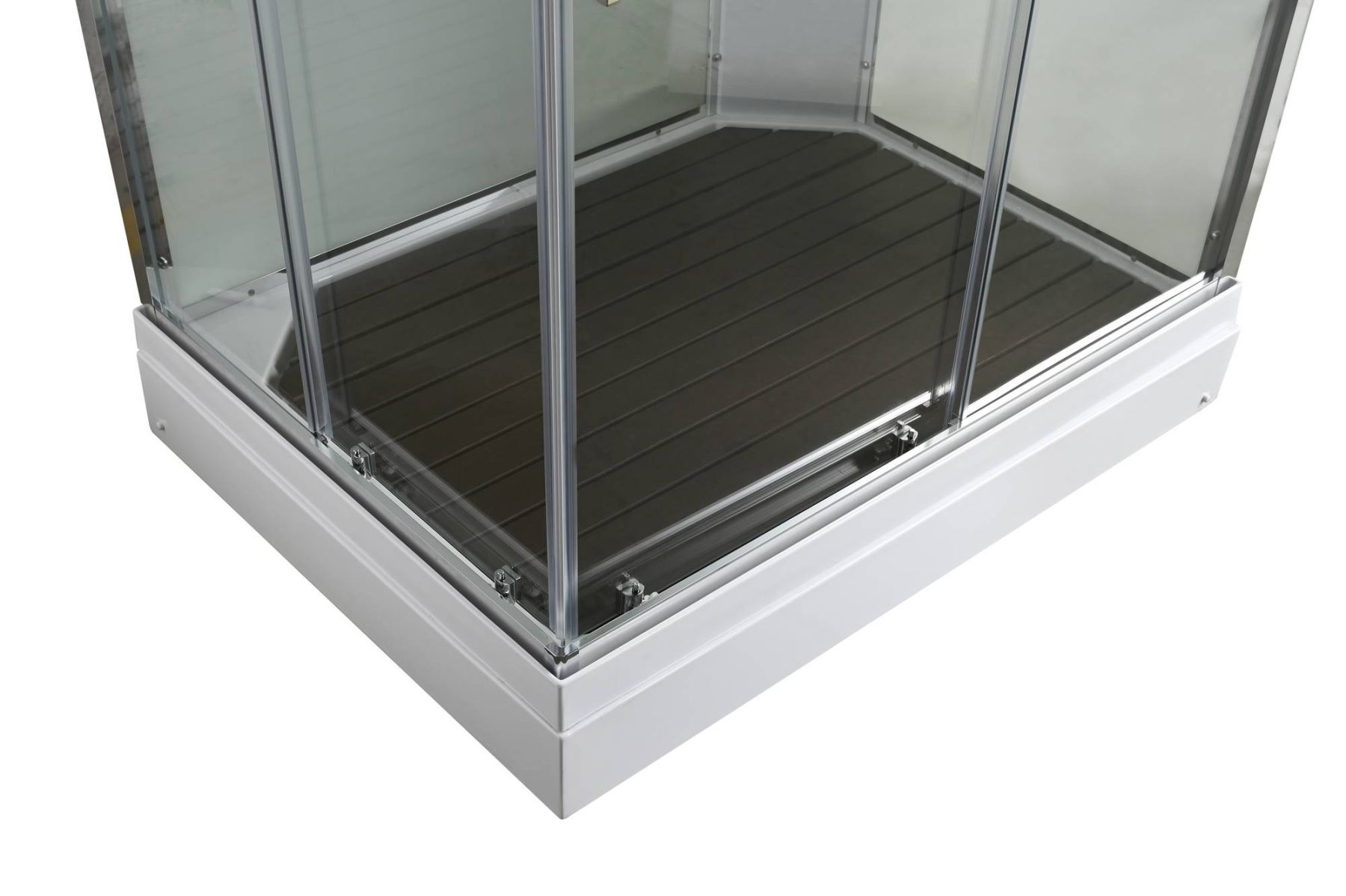 Стильная душевая кабина AvaCan сочетает в себе высокую функциональность, практичность и надежность. При изготовлении применяется безопасное закаленное стекло, надежно фиксируемое алюминиевым профилем. Профиль сделан из алюминия повышенной прочности. Сборка без силикона (увеличивает срок службы, защищает от протечек), внутренняя сборка (облегчает установку и ревизию; позволяет установить в ограниченном пространстве и обойтись без демонтажа других сантехнических приборов), смеситель резьбовой (без хомутов). Съемный экран поддона (позволяет осуществлять подключение и ревизию сифона).Двойные металлические ролики дверей (распределение нагрузки на два ролика, увеличивают срок службы). Душевая штанга(позволяет регулировать по высоте ручную лейку), ручная арома-лейка с витамином С (картридж в комплекте,есть возможность замены или удаления картриджа), полочки(из стекла, с ограничителем), сифон с гидрозатвором.