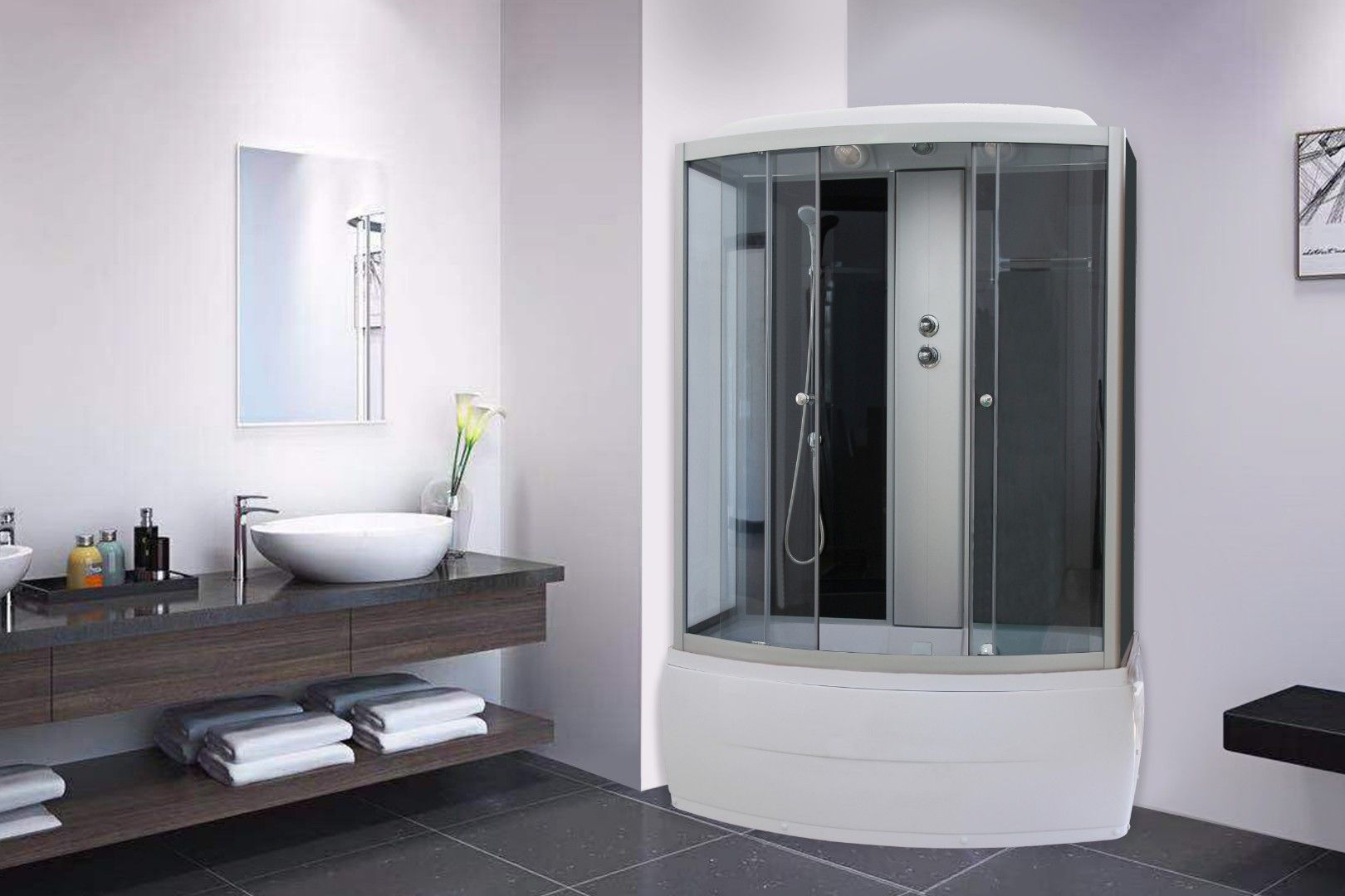 Душевой бокс CNE170Размер: 170х75х215смДушевой бокс объединяет в себе ванну и душевую кабину. Размер модели позволяет полежать в «ванне» взрослому человеку.Достоинства:Закаленное тонированное стекло, толщина 4 мм.Задние стенки – закаленное черное стекло, 4 мм.Профиль: матовый хромированный алюминиевый, устойчив к коррозии.Поддон: высокий прямоугольный 50 см. Съемный экран облегчает доступ к коммуникациям.Верхний душ ТРОПИК, ручной душ, сифон, налив воды в поддон.В серебристую центральную панель возможна установка сенсорного пульта.Без пульта, без радио, без света!Внимание! Производитель оставляет за собой право вносить изменения в конструкцию и комплектацию моделей без предварительного уведомления!