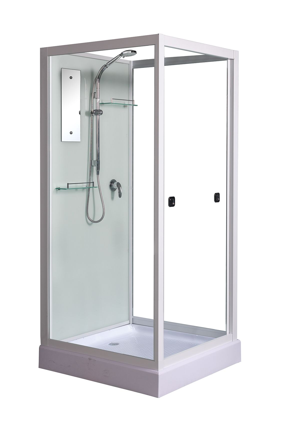 Стекло 6 мм. Задняя стенка - крашеное непрозрачное белое . Фронтальное стекло и боковые стекла прозрачные. Дверь стекло прозрачное.