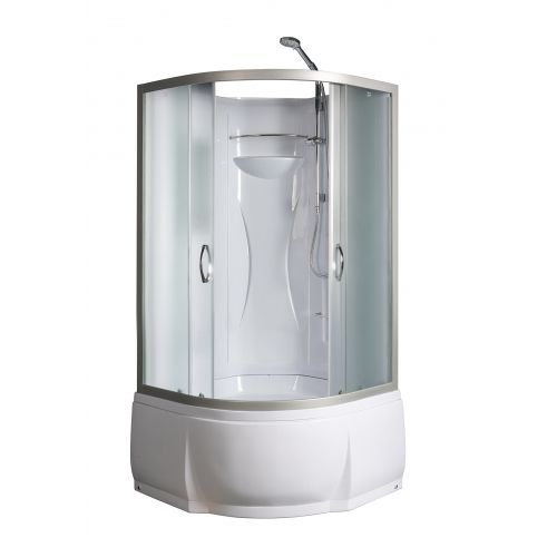 ~ без крыши ~ штанга ~ полочки (2шт) ~ смеситель ~ зеркало ~ ручной душ. 3-х позиц. ~ сиденье ~ поддон п/кр выс. со/съемн экр.(Н=46см) ~ сифон