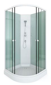 поддон низкий 15см фронтальные стекла:матовые фактурные задние стекла : белые матовые задняя панель: белый пластик белый алюминиевый профиль регулируемые ролики белые ручки для дверей смеситель, ручная лейка слив с сифоном