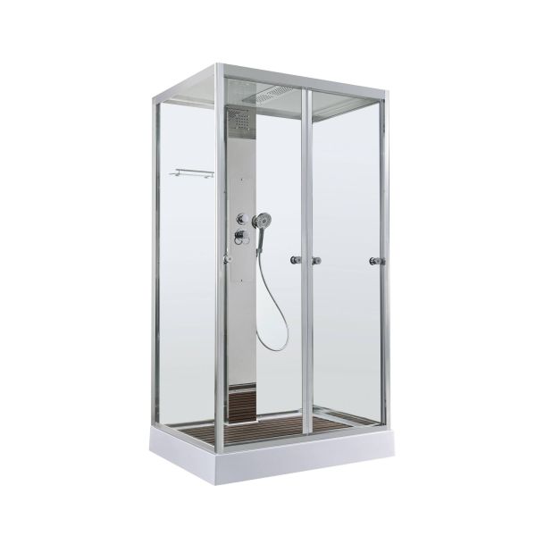 Стильная душевая кабина AvaCan сочетает в себе высокую функциональность, практичность и надежность. При изготовлении применяется безопасное закаленное стекло, надежно фиксируемое алюминиевым профилем. Профиль сделан из алюминия повышенной прочности. Сборка без силикона (увеличивает срок службы, защищает от протечек), внутренняя сборка (облегчает установку и ревизию; позволяет установить в ограниченном пространстве и обойтись без демонтажа других сантехнических приборов), смеситель резьбовой (без хомутов). Съемный экран поддона (позволяет осуществлять подключение и ревизию сифона).Двойные металлические ролики дверей (распределение нагрузки на два ролика, увеличивают срок службы). Душевая штанга(позволяет регулировать по высоте ручную лейку), ручная арома-лейка с витамином С (картридж в комплекте,есть возможность замены или удаления картриджа), полочки(из стекла, с ограничителем), сифон с гидрозатвором.