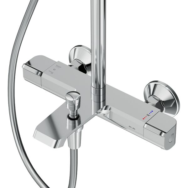 Душевая система AM.PM Func F078F500 с термостатом — это инновационное решение для организации комфортного и безопасного душевого пространства. Модель выполнена в современном геометричном дизайне с хромированным покрытием, что придает ей утонченный внешний вид и устойчивость к коррозии. Система оснащена термостатом с защитой от ожогов, который точно поддерживает заданную температуру воды, а стопор безопасности на 38° предотвращает случайное изменение настроек.