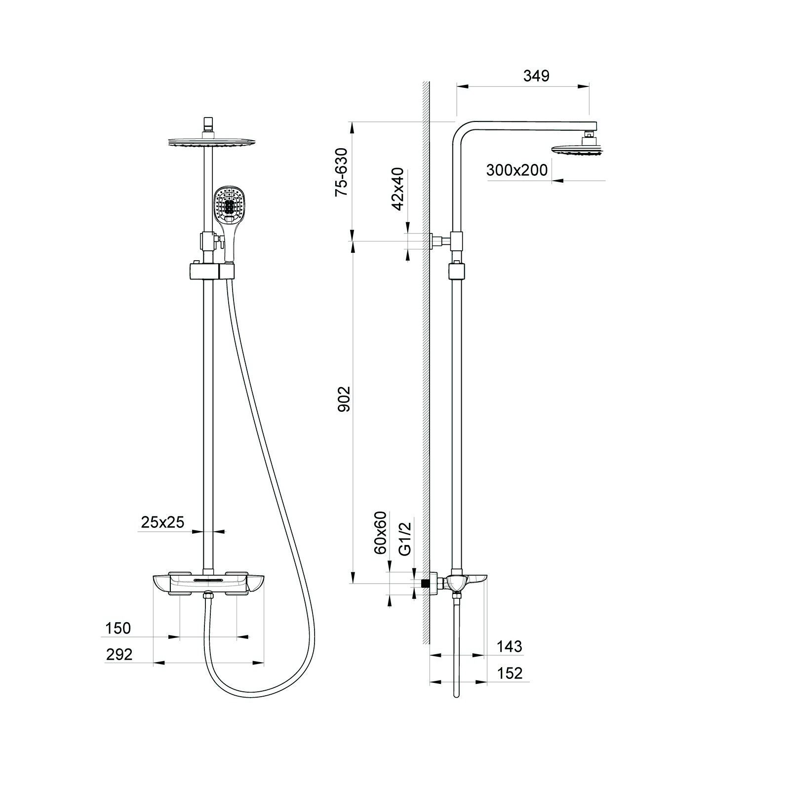 • Размер верхнего душа, см: