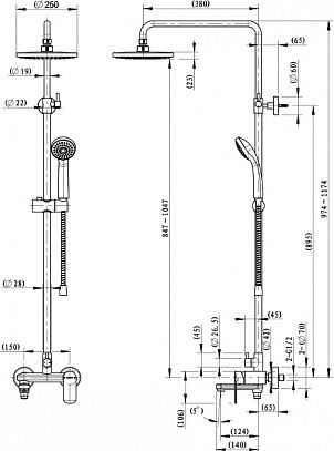 Душевая стойка для ванны Bravat Opal с большим круглым верхним душем и смесителем. Серия известна не только своим качеством, но и высоким уровнем эргономики.