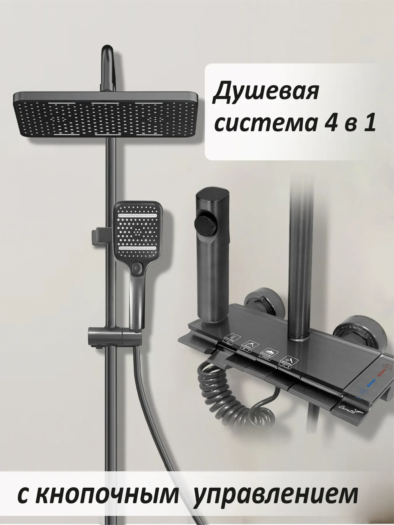 Душевая стойка Ceruttispa C-3A с кнопочным смесителем графит купить