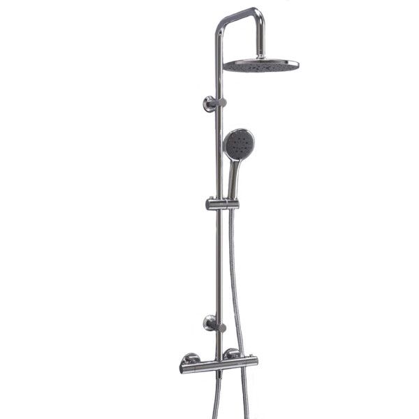 Душевая система Dorff New plus D0710400. Душевая система и смеситель для ванны и душа c термостатом по привлекательной цене. Душевая система Futura с тропическим душем, ручным душем с 3 функциями и длинным шлангом в 1500 мм - просто находка в своем сегменте. А стойки возможностью регулировки по высоте и шланги с защитой от перекручивания станут приятным бонусом для тех, кто ценит эргономичность и функциональность.Термостат душевых систем в элегантных современных размерах предотвратит от ожогов собрал в себе лучшие немецкие качества: стильный дизайн, компактные размеры, европейское качество, прочность и долговечность.Материал латунь, ПВХ (поливинилхлорид), нержавеющая сталь Количество режимов струи1УправлениеТермостатРазмер лейки, мм110Число монтажных отверстий4Стандарт подводки1/2"Количество потребителей2Назначение прибораДля ванны, Для душаВес с упаковкой, г2650Состав набора: Вентиль, Верхний душ, Держатель для лейки, Душевая лейка, Душевая штанга, Кронштейн для верхнего душа, Смеситель, Шланг для душаВнешнее исполнениеФорма душаКруглаяМонтажНа потолок, На стенуПоверхность изделияГлянцеваяСтильСовременныйИсполнение изливаМонолитный, С режимом "душ"Особенности: Защита от скручивания, Регулировка угла наклона, Автоматический девиатор, Ограничитель температурыДополнительныеТипДушевой комплектБрендDorffАртикулD0710400Страна-изготовительГерманияГарантия5 летЦветСеребристый хром