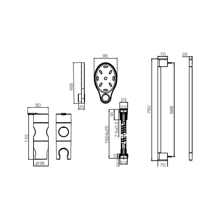 Мобильный держатель позволяет закреплять ручной душ на любой высоте. Удобство создает мыльница, крепящаяся к штанге душа.? штанга 25*750 мм,