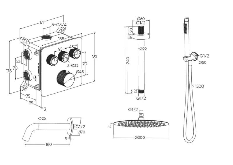 Душевой комплект Milleau Tissage TERMO 3SBIT/802-CR хром