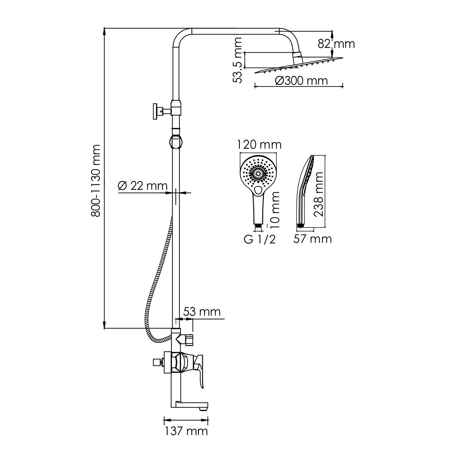 Душевой комплект WasserKRAFT A166.116.101.010.CH хромХарактеристики