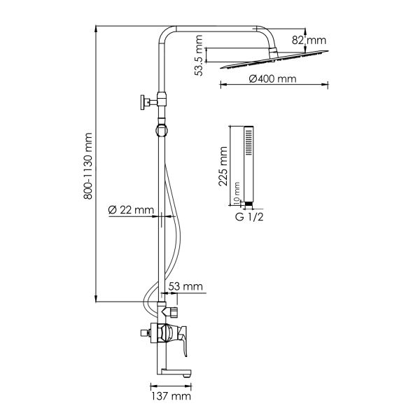 - Размер ручного душа, см:22.5
