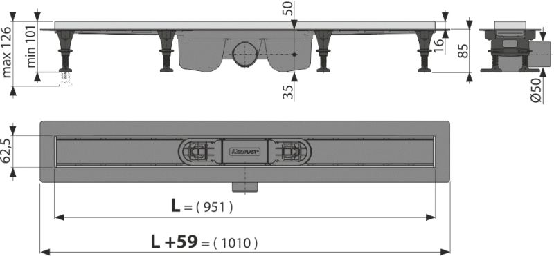 • Регулируемые монтажные ножки 0-27 мм, позволяют быстро и удобно установить желоб и выровнять его в горизонтальной плоскости