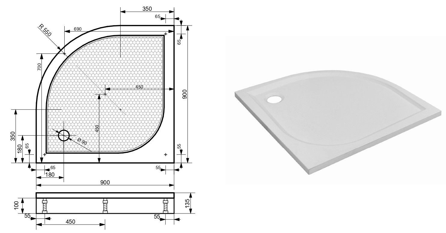 Душевой поддон Эстет Омега ФР-00000764 90x90см белый купить