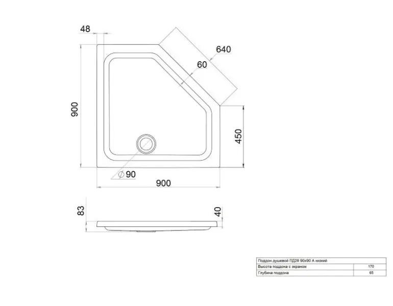 • Высота поддона 170мм