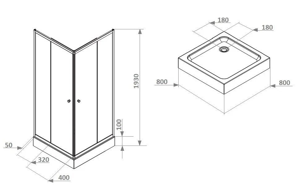 - Поддон белый из ABS-пластика, квадратный, с бортиком по периметру;