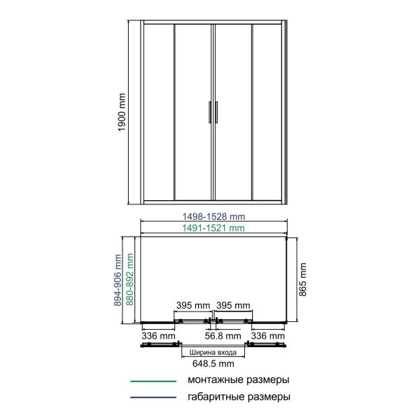 Душевой уголок Wasserkraft Lippe 45S 45S48 150х90 см хром