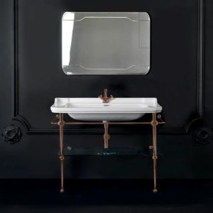 Консоль для раковину Kerasan Waldorf 9203K3br бронзаKerasan Waldorf 9203K3 Металлическая структура для раковины 120 см, со стеклянной полочкой, цвет бронза (из 2-х коробок: арт. 920393+920293 и 920401). Для монтажа с раковинами Kerasan Waldorf 4144K1.