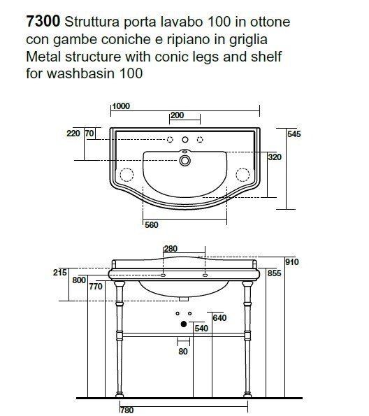Консоль под раковину Kerasan Retro 109301 100 смKerasan Retro 730090 Металлическая консоль с полочкой, для раковины Retro 1050. Возможные варианты цветовой отделки: 90 - хром; 91 - золото; 93 - бронза.