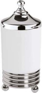 Контейнер Boheme Hermitage Chrome 10394 замечательно впишется в дизайн любой ванной комнаты, будь то компактная ванная в многоквартирном доме или большой санузел в загородном коттедже. Серия Hermitage Chrome отличается превосходным дизайном с соблюдением всех ключевых элементов стиля ретро.Производитель Boheme предлагает безупречное, сочетание материалов (латунь, керамика) высокого качества, с полным отсутствием вредных для здоровья веществ. Хром, основной цвет исполнения Boheme Hermitage Chrome, отлично подходящий большинству дизайнерских решений. Ключевые габариты изделия: ширина 8 см, глубина 8 см, высота 15 см. Круглая форма 10394 прослеживается во всех линиях и придает аксессуару неповторимый стиль. Контейнер размещается в наиболее удобном положении на столе благодаря настольному способу установки.Италия родина бренда Boheme, вся продукция производится со строгим соблюдением всех стандартов, благодаря чему можно быть абсолютно уверенным в надежности и высоком качестве. Контейнер Boheme Hermitage Chrome 10394 это абсолютный комфорт в современной ванной комнате.