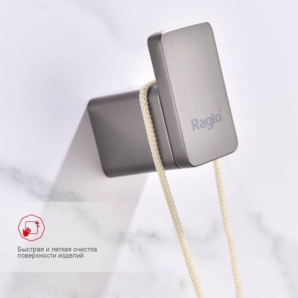 Raglo R301.05.09 Держатель полотенец в ванную, крючок. Изделие предназначено для хранения полотенец и банных халатов в ванной комнате. Форма квадратная. Крепление в комплекте.