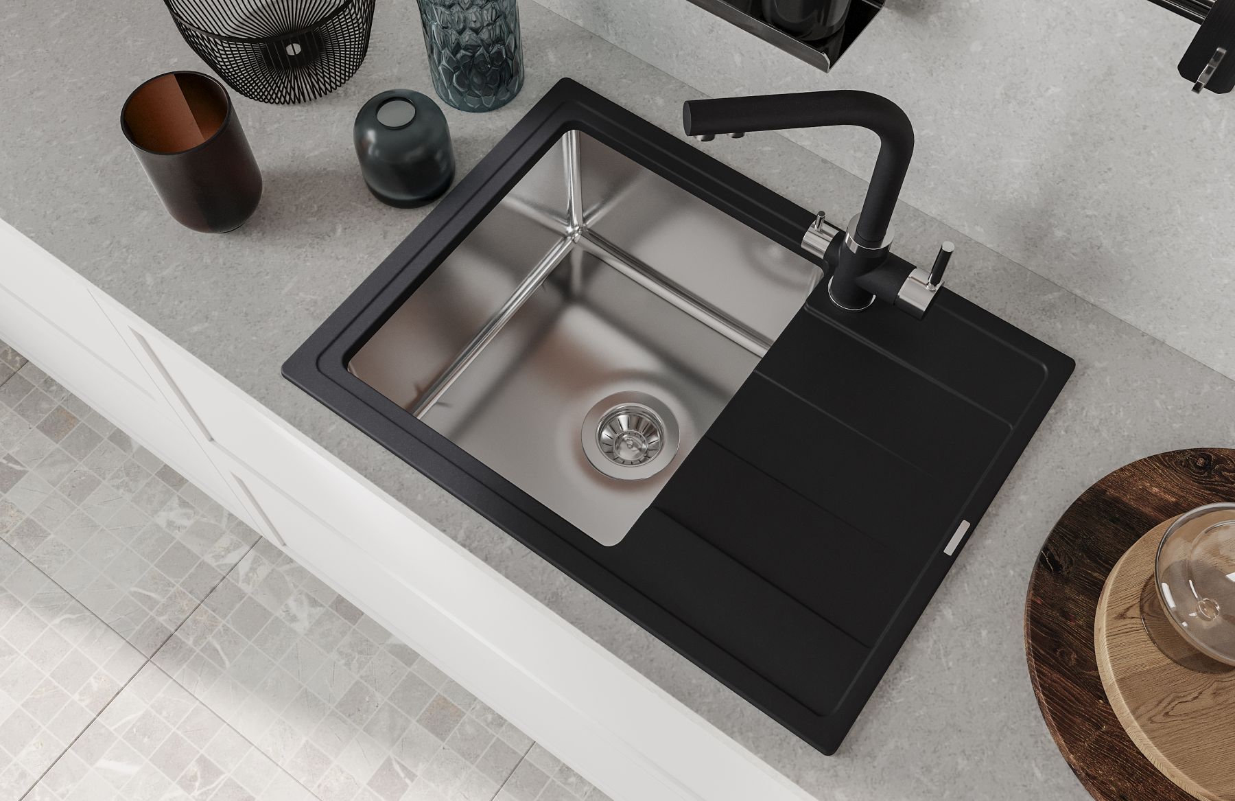 Мойка Комби 650 - это новое решение для кухонного гарнитура, отлично впишется в любой интерьер. В дизайне мойки использовано необычное сочетание камня и нержавеющей стали.