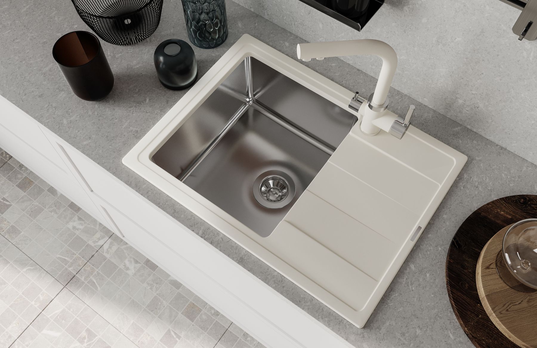 Комбинированная врезная мойка для кухни Флорентина модель Комби 650 выполнена из искусственного камня и нержавеющей стали (1 мм).