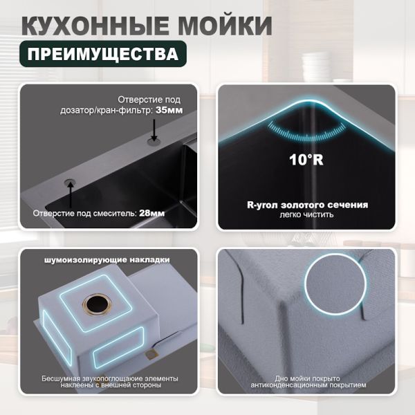 Кухонная мойка Splenka S705.7850.09, графит. Размер - 780*500*220мм. Кухонные мойки Splenka отли... Подробнее