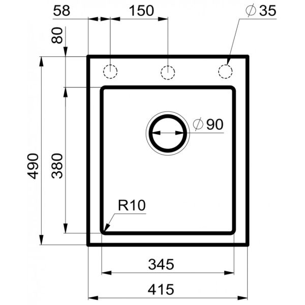 - Отверстия под смеситель:нет