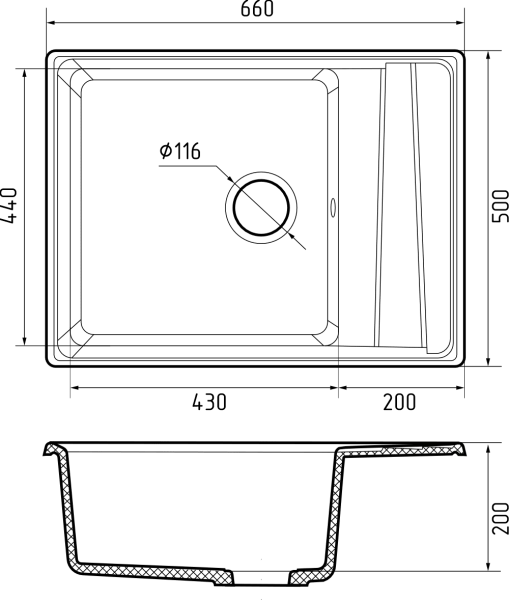 Мойка кухонная GranFest LEVEL LV-660L графит