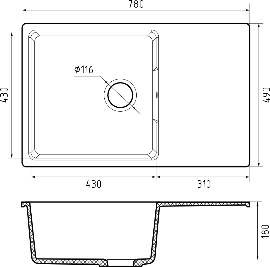 Комплектация: сливная арматура с корзинчатым вентилем (Ø 3.5""/90 мм), тех.паспорт, гарантийный талон."