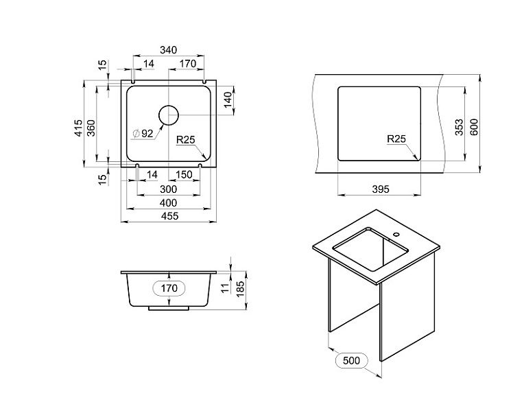 Мойка кухонная Granula 3601, ЧЁРНЫЙ