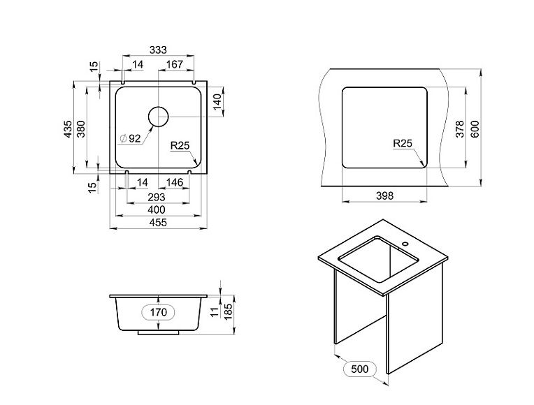 - Отверстия под смеситель:1
