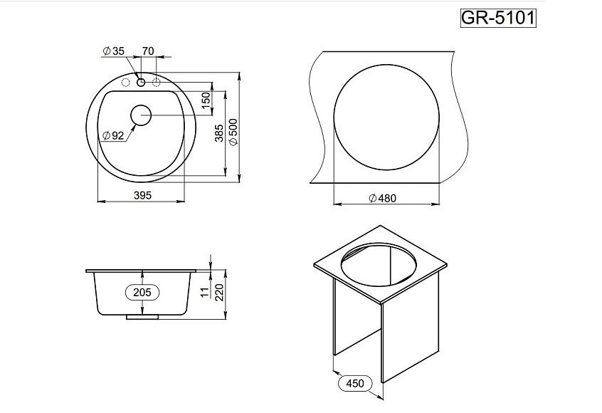 Мойка кухонная Granula 5101, АЛЮМИНИУМ Подробнее