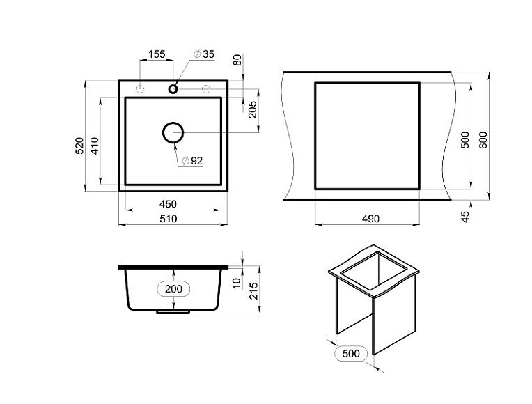 - Отверстия под смеситель:1