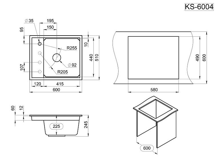 Мойка кухонная Granula Kitchen Space 6004, ШВАРЦ