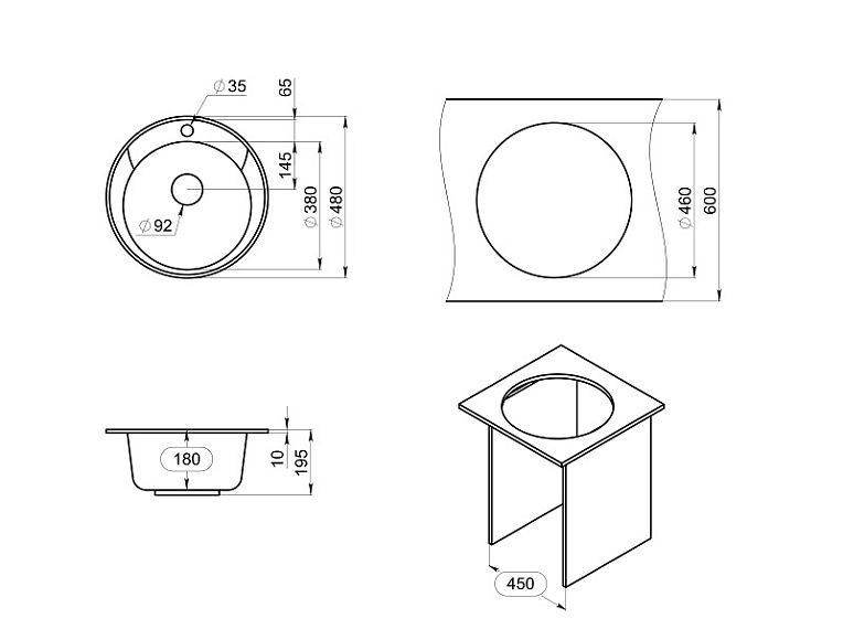 Размер чаши, мм